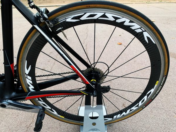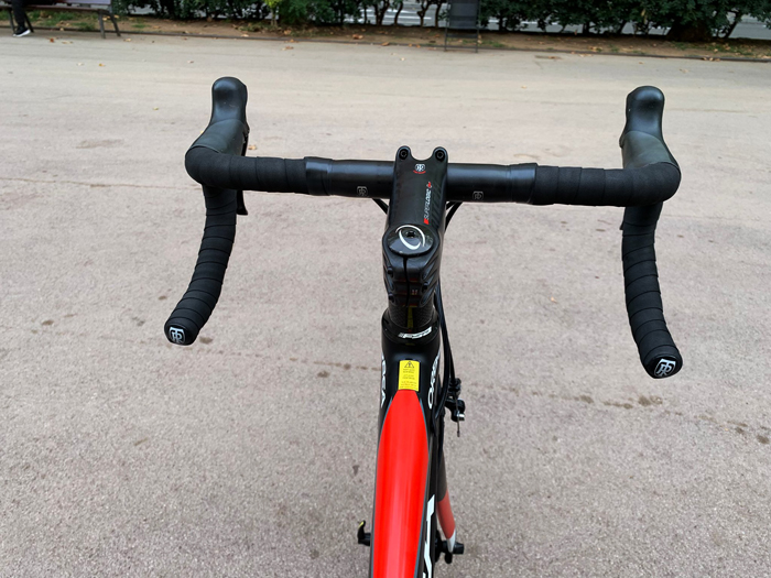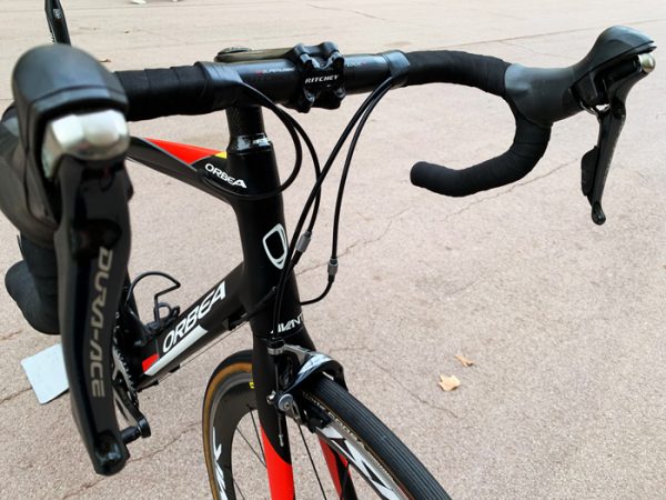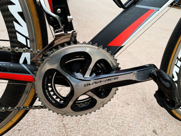 Grupo completo de cambios Shimano Dura-Ace de 11 velocidades, bielas Shimano Dura-Ace, frenos Shimano Dura-Ace, sillín Selle Italia, tija sillin Ritchey WCS carbon, manillar y potencia Ritchey Superlogic carbon, llantas Mavic Cosmic Pro de carbono con neumáticos Vittoria Corsa Grapheno 2.0 700X28C. Pedales Look Keo Easy.