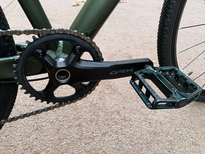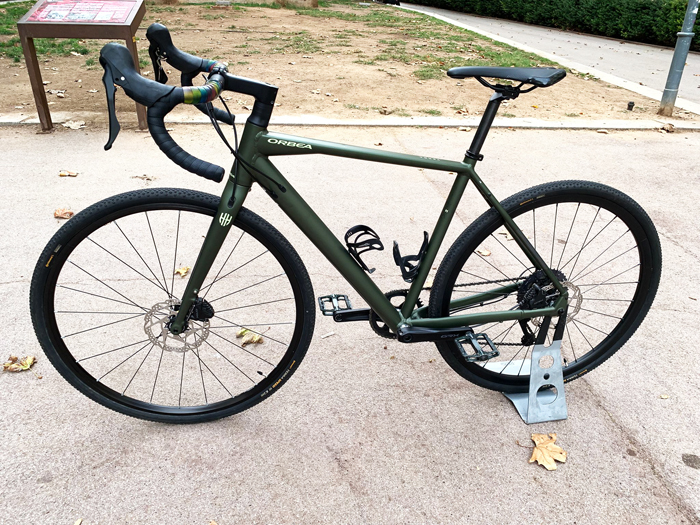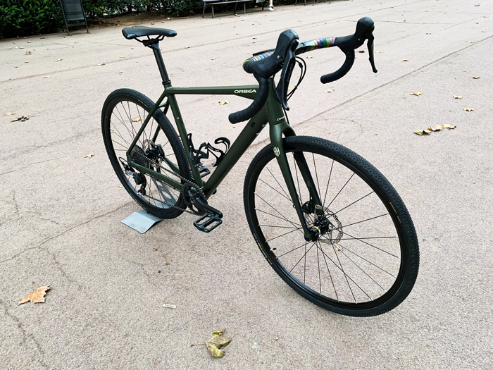 Estado impecable, está como nueva, modelo 2021. cuadro y horquilla de aluminio, grupo de cambios Shimano GRX 1X11, frenos de discos hidráulicos Shimano GRX, bielas GRX con monoplato 40T y casette 11/40, tija de sillín OC carbono, manillar y potencia OC, sillín Orbea SR. Llantas Mavic/Shimano, neumáticos Continental Terra Speed, pedales planos.