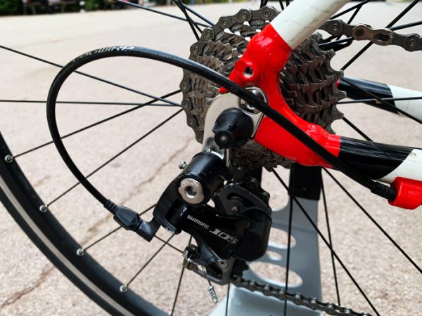 Cambio Shimano 105 2X10 velocidades, bielas Shimano Sora con platos compac 50/34,   frenos Shimano Sora,  tija de sillín Specialized , manillar Bontrager RXL de carbono, potencia Lapierre y sillín Specialized, neumáticos Continental Ultrasport 700X25C, pedales planos.